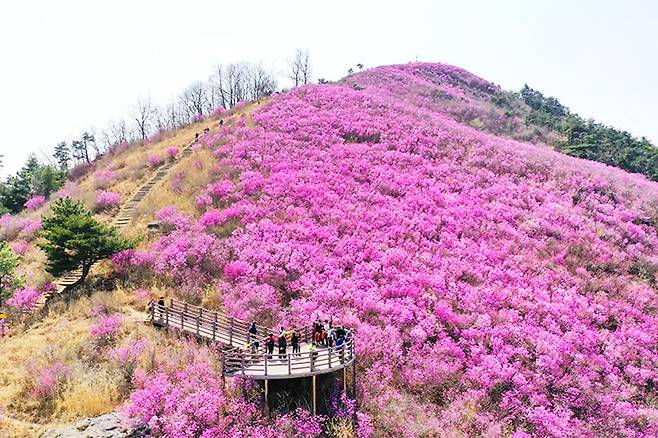 특히 진달래가 피는 시기에는 등산로 입구부터 흩날리는 꽃잎들이 발걸음을 붙잡는다.