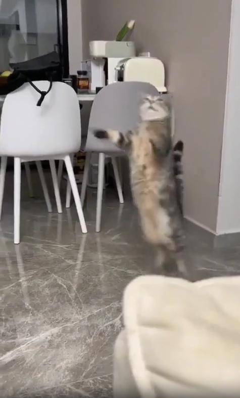 고양이는 뛰는 동안 몸을 살짝 앞뒤로 흔들며 균형을 유지하려 애쓰고, 다리를 모은 채 뒤뚱거리며 앞으로 나아가려 합니다. 그 짧은 순간, 마치 공연을 준비한 아이가 엄마 앞에서 재롱을 부리는 것 같기도 했어요. 레딧의 한 유저는 이 영상을 보고 "내 고양이는 저런 짓 하다 내 발을 밟고 넘어진 적 있음ㅋㅋ"이라고 유쾌한 경험을 공유하기도 했습니다.