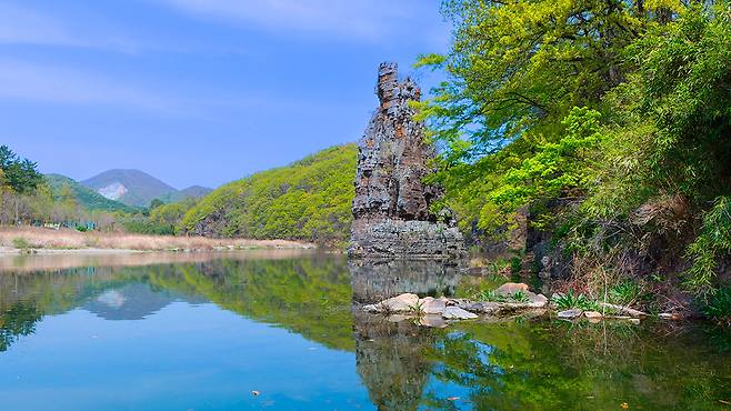 33미터가 넘는 거대한 바위가 말없이 서 있는 곳, 계절마다 다른 얼굴을 보여주는 강변 풍경이 펼쳐지는 이곳.