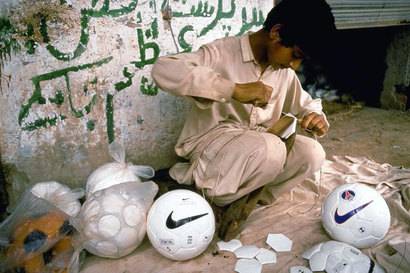 학교에 가는 대신 나이키의 로고가 새겨진 축구공을 만드는 파키스탄 소년의 모습이었다. 더불어 실린 사진 속에는 인도의 3살 짜리 아기가 자기의 손가락보다 더 큰 바늘로 축구공을 만들고 있는 사진이었다.