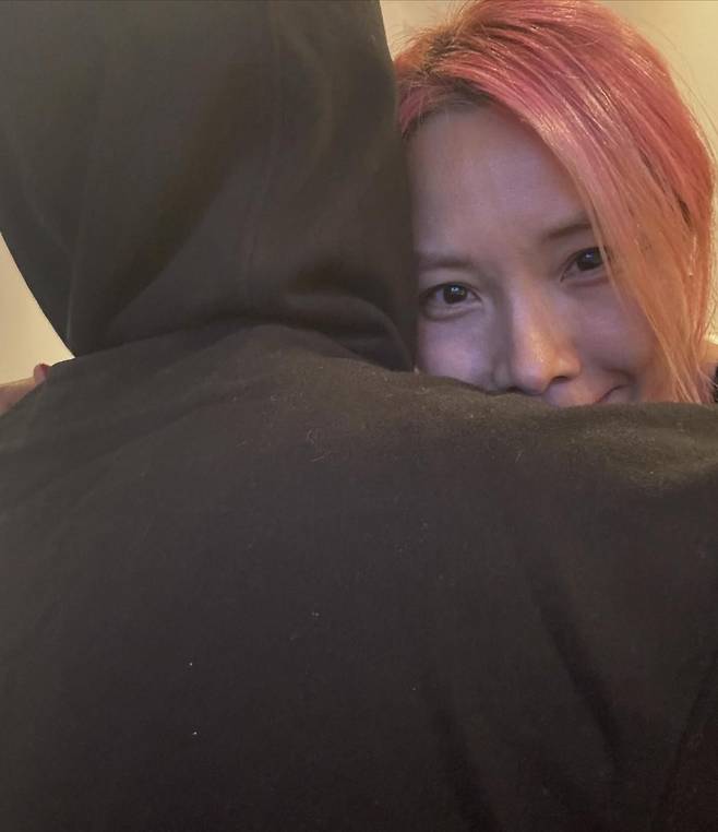 공개된 사진 속 신봉선은 누군가의 품에 안긴 채 환한 미소를 짓고 있어 눈길을 끌었다.