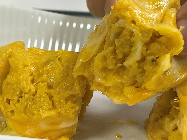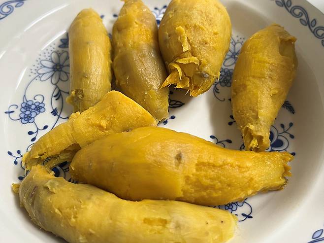 맛있는 치즈와 고구마가 돌돌 말려서 특별한 고구마 간식이 되었습니다. 고구마 단맛이 부족하다면 꿀이나 시럽을 소량 곁들여 드셔도 좋습니다.