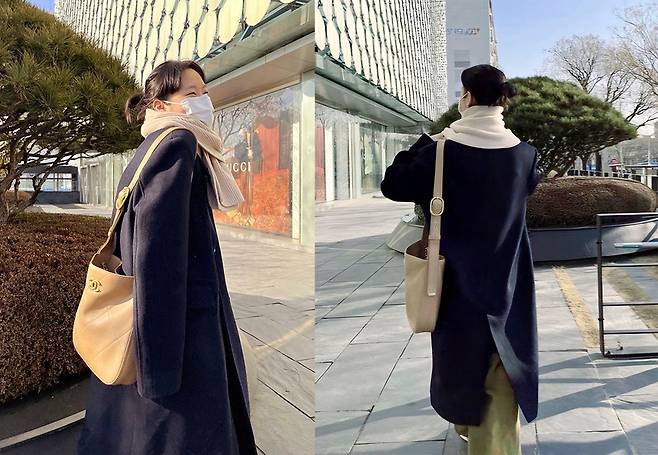 이때 매치한 가방은 샤넬 시즌, 맥시 호보백