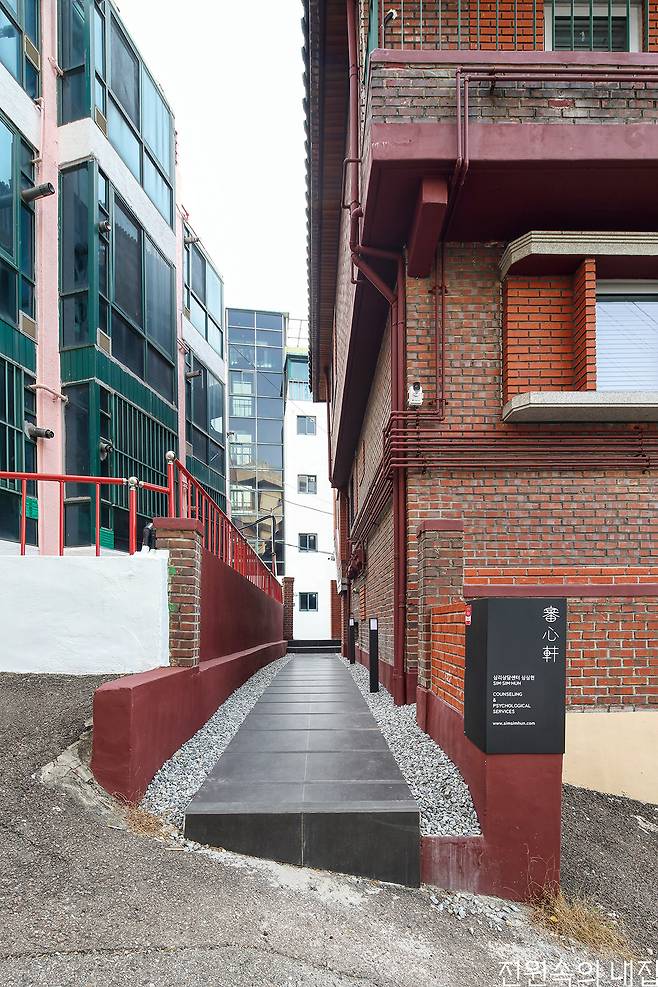 인테리어에서 가장 주목할 부분은 ‘심심헌’이란 이름을 가진 지하층의 심리상담소이다. 건축을 전공해 건축사무실에서 근무한 이력도 가지고 있는 건축주는 건축가와 이 공간을 구성하는 데에 많은 고민을 거듭했다.