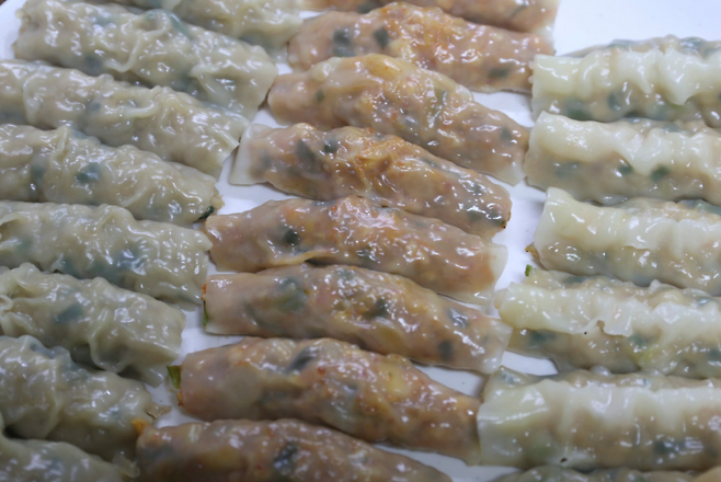 ▶ 찹쌀피 특유의 쫄깃한 식감과 풍부한 속 재료의 조화가 매력