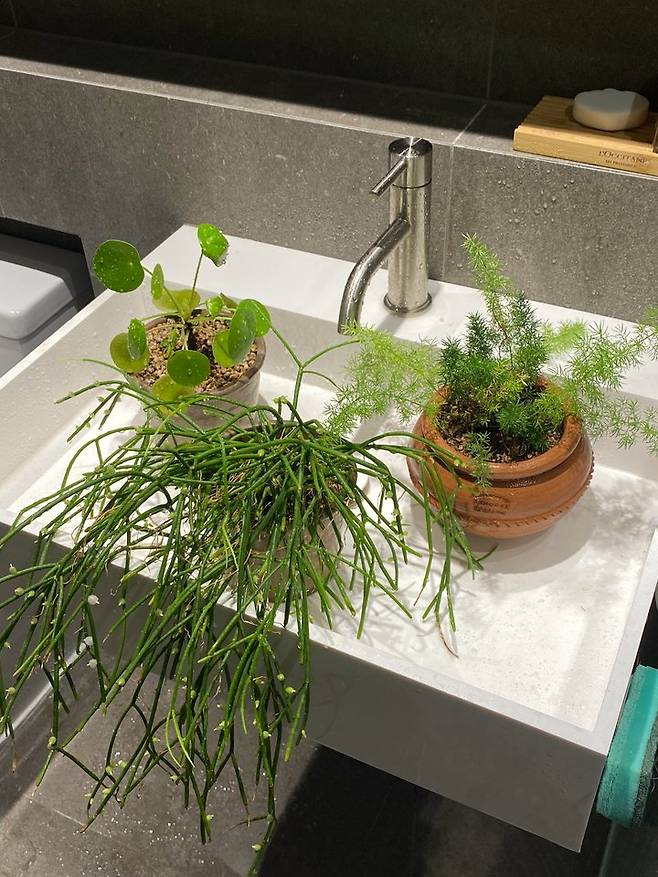 베란다가 따로 없는 저희집에 유일한 베란다스러운 수전이에요. 화분 물을 주거나 걸레를 빨 때 유용하게 쓰고 있어요.