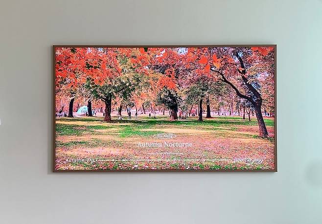 삼성 The Frame TV는 프레임 컬러를 선택할 수 있더라고요. 오크컬러로 골랐더니 집 무드와 잘 어울려서 아주 만족스러워요.