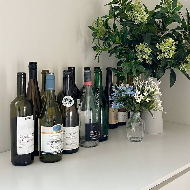 장 한쪽에는 괜찮았던 와인병들을 모아두고 있어요. 요즘 남편과 와인에 취미를 붙여서 앞으로 더 많이 쌓여갈 예정이에요.
