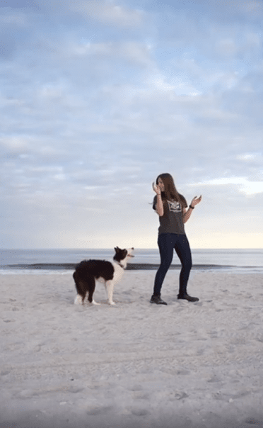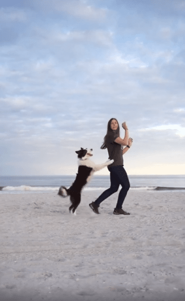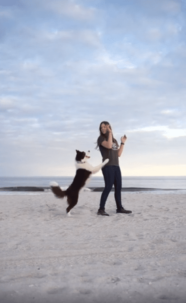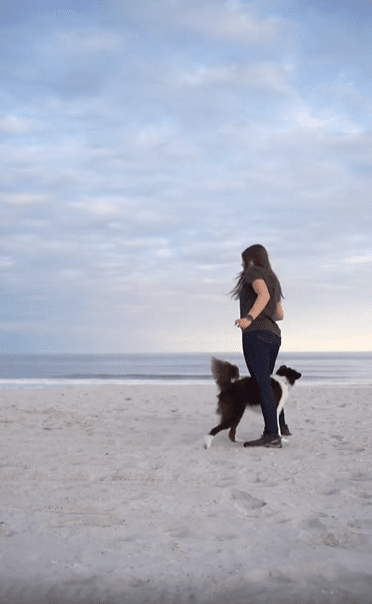 모래사장에서 펼쳐지는 완벽한 호흡—눈빛만으로 통하는 강아지와 보호자의 아름다운 춤사위