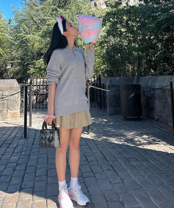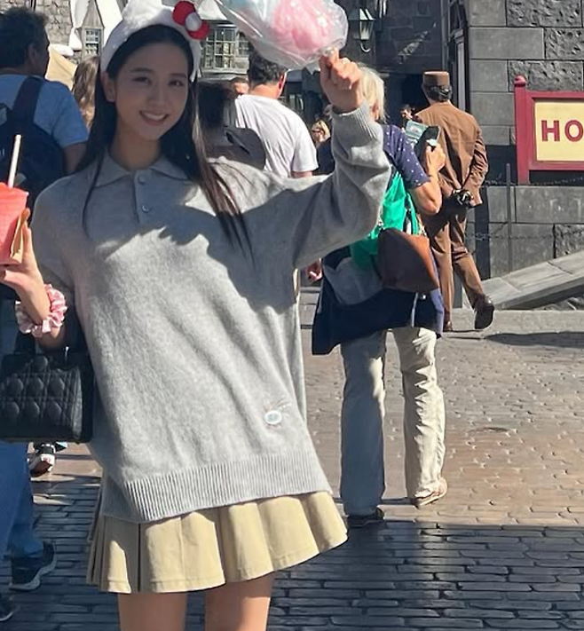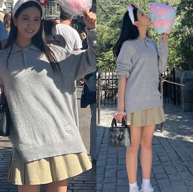 디올 공주 지수 님이 러블리한 프레피룩으로 놀이동산에서 즐기는 모습을 보여줬어요.