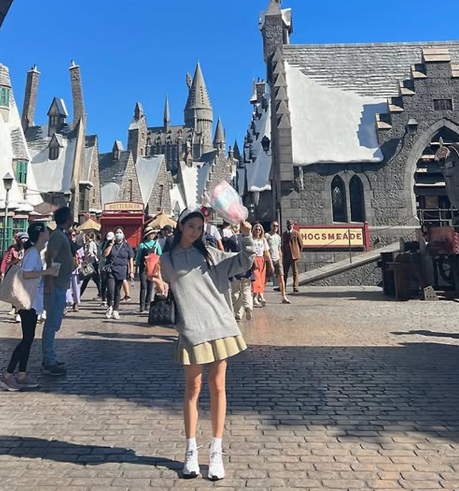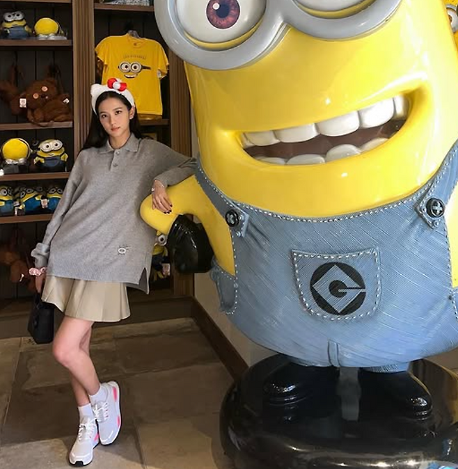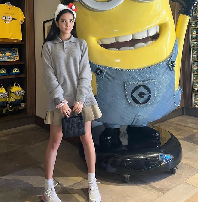 사진 속 지수님은 귀여운 미니언과 함께 행복한 모습을 보여줬는데요, 마치 영화 속 한 장면 같은 비주얼이었어요! 놀이동산에서는 캐주얼하면서도 러블리한 코디가 인기가 많죠. 그래서 지수님의 오버사이즈 니트 & 플리츠 스커트 조합이 더욱 돋보였던 것 같아요.