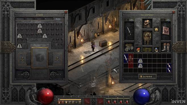 여기에 팬들이 오래 기다려 온 '고급 보관함 탭'이 추가된다. '디아블로2: 레저렉션 - 악마술사의 군림' 이용자에게 제공되는 해당 탭은 여러 재료, 보석, 룬 등을 따로 보관하는 탭이다. 해당 탭 안에서 아이템은 중첩되어 룬으로 보관함 하나를 가득 채울 필요 없이, 보관함에 넣기만 하면 정리 된다.
