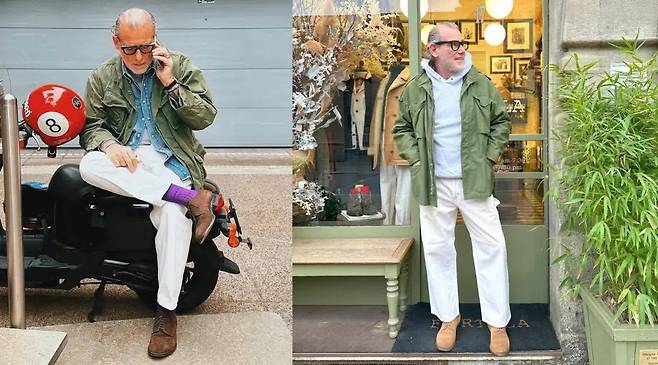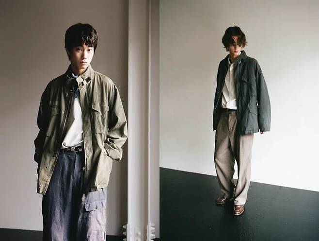 아워셀브스는 실용성을 바탕으로 오래 입을 수 있는 옷을 만든다. 그래서 아워셀브스는 빈티지, 워크웨어를 좋아한다면 한 번쯤 들어봤을 국내 브랜드다. 아워셀브스는 M65 필드자켓을 여유 있는 실루엣으로 변화를 주었고 카라 속 후드를 제거했다. 밀리터리를 미니멀하게 해석했다. 그러면서 네임텍을 남긴 것이 재미있다. 원단의 표면을 연마하는 파우더 스노우 가공을 해서 원단이 부드럽다. 부드러운 밀리터리 자켓이라니 생경하지만 일상과 한층 가까워진다. 가격은 39만 8,000원. 구매는 여기(https://tinyurl.com/5ckebf3u)에서.