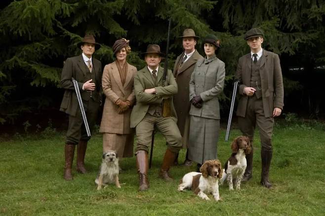 영국 ITV에서 방영한 드라마 <다운튼 애비>. 귀족들이 사냥할 때 입었던 옷을 엿볼 수 있다.