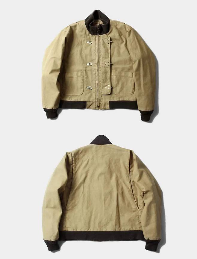 다음은 탱커자켓이다. 정식 명칭은 ‘Jacket, Combat, Winter’로 세계 2차대전 당시 탱크에서 임무를 수행하는 기갑병에게 동계용으로 보급되었다. 추운 겨울 비좁은 탱크 안이라는 극단적인 환경에서 탄생했으니 탱커자켓도 평범할 리 없다. 탱크를 오르락내리락하고 좁은 공간에서 활동하기 때문에 기장이 짧고 목과 소매에 울 소재를 사용하여 보온성을 높였다. 이런 뚜렷한 특징 때문에 탱커자켓은 영화에 자주 등장하고 굿즈처럼 영화 속 탱커자켓을 그대로 만들어 판매하기도 한다.