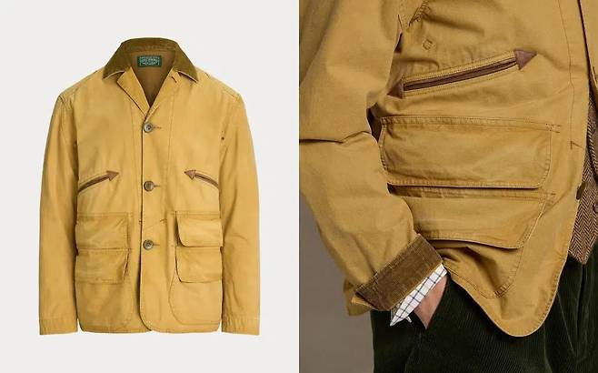 랄프로렌는 패션 역사에 등장하는 거의 모든 디자인을 다룬 경험이 있다고 보아도 무방하다. 1958년 시작하여 60년 동안 폴로, 폴로 스포츠, 더블알엘, 폴로 퍼플 라벨 등 다양한 방향으로 확장하여 방대한 제품을 판매한다. 그중 폴로 컨트리는 미국 서부 문화 영향을 받아 탄생했다. 폴로 컨트리에서 나온 캔버스 유틸리티 자켓은 탄(Tan) 색 코튼 캔버스 원단과 갈색 코듀로이 카라의 조화가 우선 시선을 끈다. 그리고 앞면의 6개의 주머니와 뒷면 1개의 주머니가 있다. 물건을 어느 주머니에 넣었는지 뒤적일 때가 있겠지만 주머니로 가득 찬 자켓을 보고 있으면 든든해진다. 가격은 55만 9,300원. 구매는 여기(https://tinyurl.com/3zf9wb9c)에서.