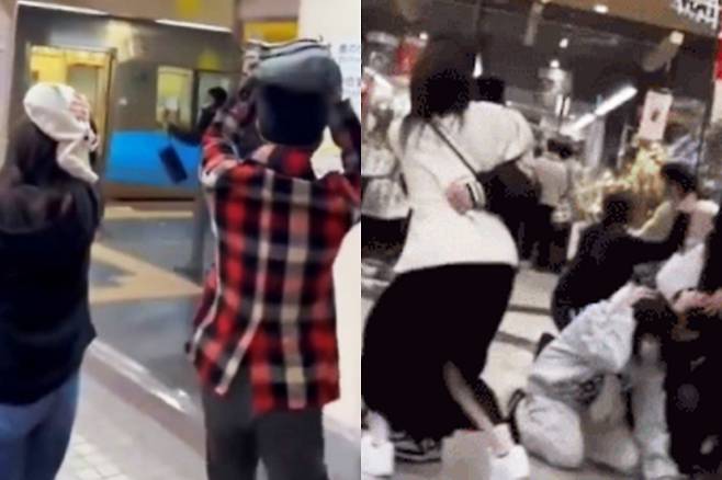 사람들은 모두 머리를 가방으로 보호했고 중심을 잃지 않기 위해 기둥에 붙어있었습니다.
