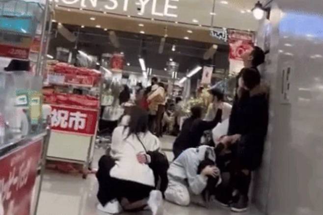 영상 속에서는 쇼핑몰의 매대와 조명이 급격히 흔들렸는데요. 방문객은 머리를 감싸고 바닥에 주저앉았습니다.