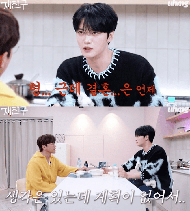 유튜브 웹 예능 '재친구'에 출연한 이민우는 결혼 계획에 대한 질문을 받았습니다. 김재중이 “형, 결혼은 언제 할 생각이냐”고 묻자 이민우는 “생각은 있지만 아직 때가 아닌 것 같다”고 답하며 신중한 태도를 보였습니다.