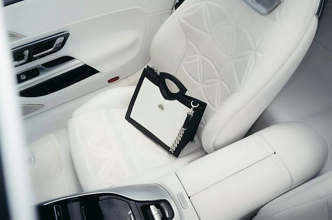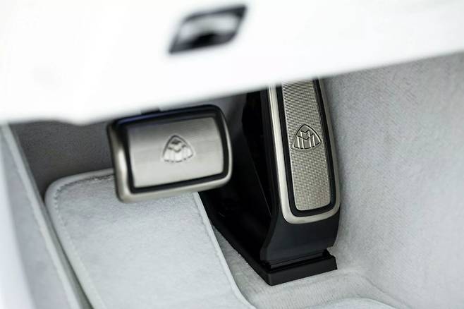두 번째 모델은 ‘화이트 앰비언스’ 컬러에 동일한 블랙 보닛과 크롬 디테일이 더해졌으며, 5홀 디자인의 21인치 전용 휠이 장착돼 차별화를 꾀했다. 외형에서 눈에 띄는 가장 큰 특징은 차량 곳곳에 반복적으로 새겨진 마이바흐 로고 패턴이다. 보닛은 물론, 전면 하단 그릴, 소프트톱 천, 루프 커버, 심지어 시트 등받이까지 로고가 반복적으로 새겨져 브랜드 아이덴티티를 강하게 드러낸다.