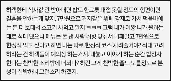 "코로나 때는 식대 5만 원이었는데, 요즘은 7~8만 원"