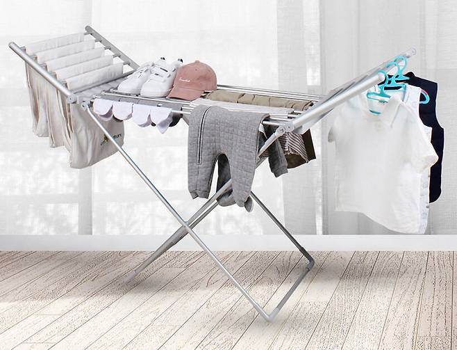 특히 실내 건조할 때 제습기나 선풍기를 건조대 아래쪽에 두면 빨래가 훨씬 빨리 마르거든요.