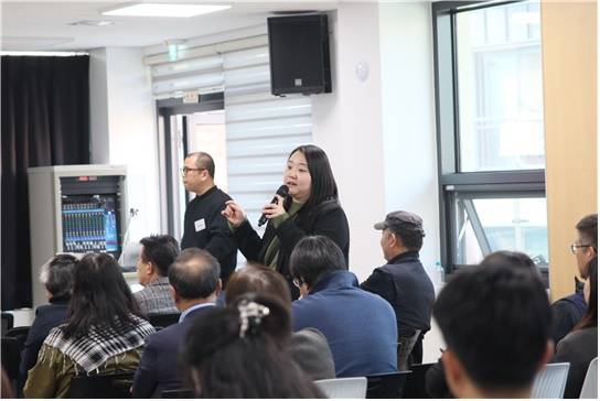 | ▲ 자유발언을 통해 도시재생 사업 종료 이후 거점 공간 상실 경험을 공유하며, 제도적 보완의 필요성을 강조하고 있는 경기도 고양시 배다리 마을관리사회적협동조합 이다인 사무국장. |