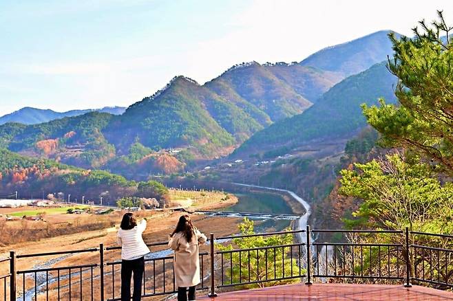 차창 너머의 풍경을 감상한 후에는 전망대에 올라 겨울을 맞이하는 나무, 맑은 골지천, 푸른 하늘이 어우러지는 전경을 즐겨보자.