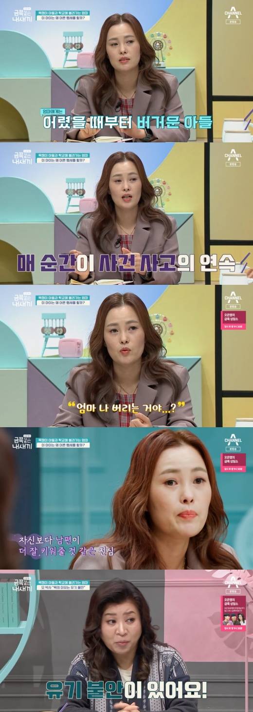 금쪽이의 엄마는 “그래서 걔한테 ‘그냥 아빠한테 갈래? 엄마는 너랑 좀 안 맞는 거 같아’라고 거의 울 것처럼 얘기를 했었다. 금쪽이가 ‘엄마 나 버리는 거냐’고 그래서 ‘너를 버리는 게 아니라 네가 더 이해받을 수 있는 게 아빠일 수도 있을 거 같다’고 얘기한 적이 있다”고 털어놨다.