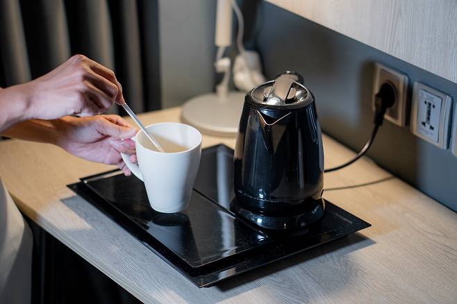 티백, 커피, 설탕, 생수 등 일회용품은 마음껏 챙겨도 괜찮아요. 그리고 고급 호텔에 있는 구두닦이 키트나 바느질 키트도 가져갈 수 있습니다.