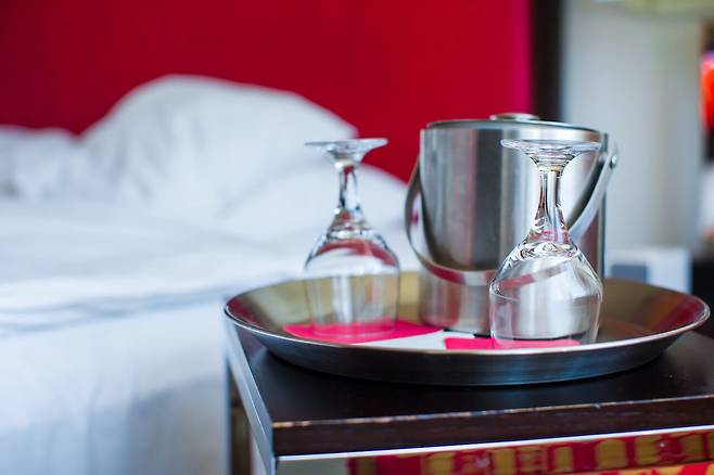 옷걸이는 물론이고 유리컵, 머그컵, 접시, 포크, 나이프 같은 식기부터 재떨이, 얼음통, 램프까지! 객실에 있는 물건들은 모두 호텔 재산이니 가져가시면 안 됩니다.
