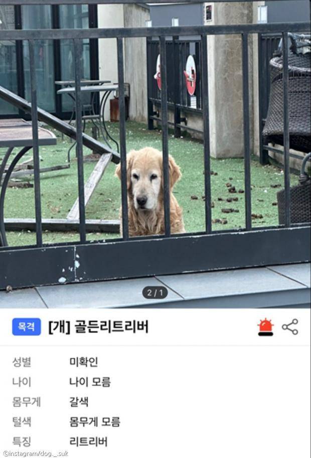 2층은 야외 테라스였기에 리트리버는 여전히 눈이나 비를 피할 수 없었다. 당시 포인핸드에 올라온 제보 사진 속 테라스 바닥에는 대변이 가득한 것으로 보아, 제대로 된 관리를 받지 못한 것으로 보인다.