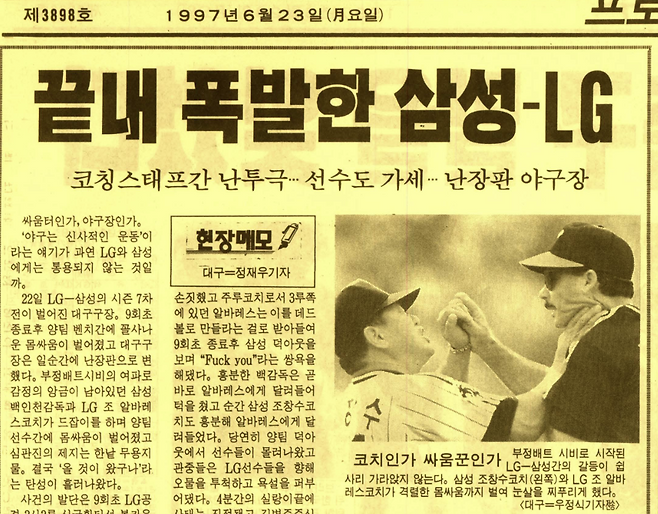 그해 삼성과 악연은 이때부터 시작됐다. ‘부정 배트’ 소동과 코칭스태프간 벤치클리어링이 이어지고, LG 천보성 감독과 삼성 백인천 감독은 친정팀을 향해 날선 신경전을 벌였다. 두 팀은 결국 한국시리즈 진출권을 놓고 플레이오프에서 맞붙게 된다.