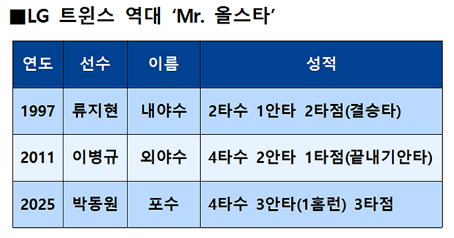 LG는 MBC 청룡 시절부터 유난히 올스타전 MVP와 인연이 없었다. 그러다 1997년 마침내 구단 역사상 최초의 ‘미스터(Mr.) 올스타’가 탄생했다.