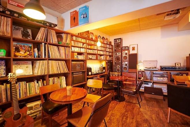 LP와 CD로 채워진 공간에서는 레트로한 감성이 자연스럽게 묻어나는데요. 낮에는 인디 음악과 함께 커피와 디저트를 즐기고, 운이 좋으면 매장에 있는 강아지들과 따뜻한 시간을 보낼 수도 있어요.