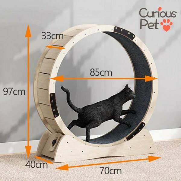 그리고 다묘가정에서 캣휠을 사용한다면 여러 마리가 한 번에 올라탈 수도 있어요. 다묘가정이 아니더라도 고양이가 편하게 쓸 수 있도록 30cm 정도로 발판 폭이 넓은 걸 사는 게 좋습니다.