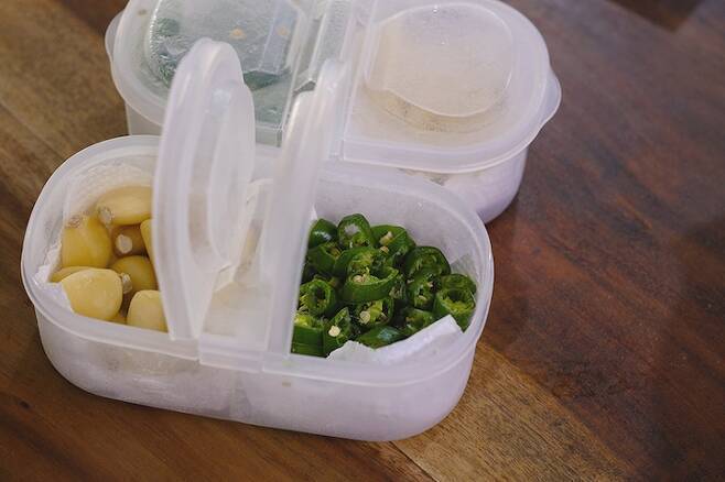 아마 많은 분들이 음식을 냉동실에 얼려 보관하실 때 일회용 비닐을 사용하실 것 같아요. 저 역시 냉동실 보관에 있어 비닐을 가장 많이 애용하던 1인이었습니다. 하지만 비닐은 냄새나 공기가 잘 통과해 식품 건조 및 맛이 떨어지는데 일조하기 때문에 제일 좋지 않은 보관법 중 하나라 할 수 있겠습니다. 해서 용기나 지퍼백을 사용을 권장드려요. 냉장고가 정리되어 깔끔해 보이는 이유도 있긴 하지만 그보다 냉동실 보관은 냉장실보다는 좀 더 오래 보관 가능하고 영양 손실 낮추고 신선하게 보관하기 위함도 있으니까요.