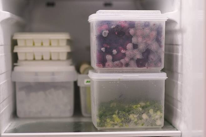 아마 많은 분들이 음식을 냉동실에 얼려 보관하실 때 일회용 비닐을 사용하실 것 같아요. 저 역시 냉동실 보관에 있어 비닐을 가장 많이 애용하던 1인이었습니다. 하지만 비닐은 냄새나 공기가 잘 통과해 식품 건조 및 맛이 떨어지는데 일조하기 때문에 제일 좋지 않은 보관법 중 하나라 할 수 있겠습니다. 해서 용기나 지퍼백을 사용을 권장드려요. 냉장고가 정리되어 깔끔해 보이는 이유도 있긴 하지만 그보다 냉동실 보관은 냉장실보다는 좀 더 오래 보관 가능하고 영양 손실 낮추고 신선하게 보관하기 위함도 있으니까요.