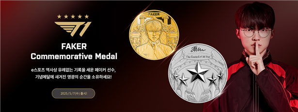 프로게이머 개인을 기념하는 메달로는 이례적인 사례다. 페이커의 생일인 오는 5월 7일을 맞아 한정 수량으로 발매되며, 수집 및 소장 가치를 모두 갖춘 아이템으로 주목된다.