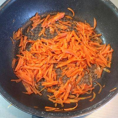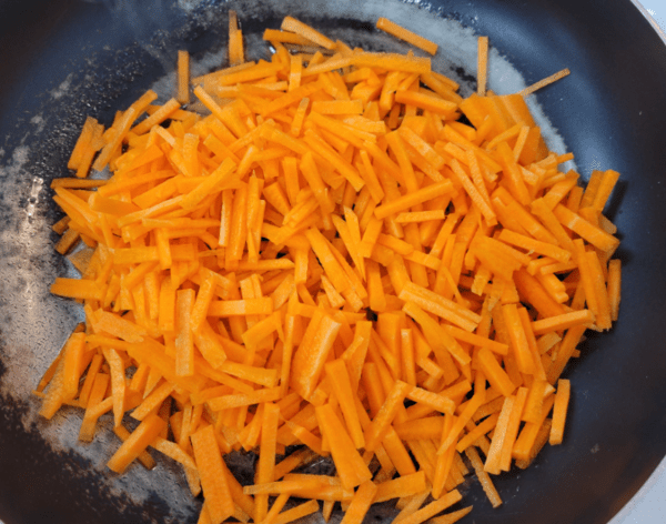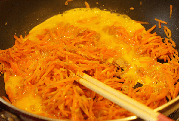 이때 소금과 후추로 약간 간을 해주면 향이 눌려 당근 특유의 냄새도 줄어든다. 너무 센 불보다는 중불로 볶아야 당근이 타지 않고 자연스럽게 익는다. 볶는 시간은 2~3분 정도면 충분하다.