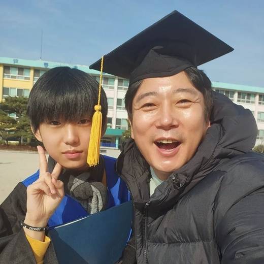 사진에는 이수근과 둘째 아들 태서(14)의 모습이 담겨있다. 이수근은 아들의 학사모를 뺏어쓰고 환하게 웃고 있다.