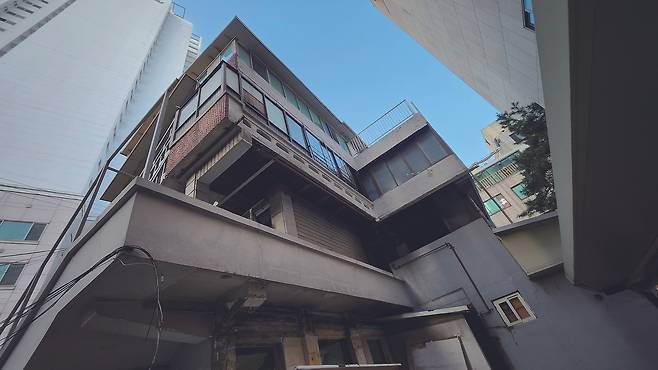 애초에 외부에 있던 계단은 비바람을 막기 위해 얼기설기 가설한 상태였고, 옥탑방 또한 오랜 시간을 거치며 조금씩 늘어나 불법 증축된 부분이 상당했다. 건축주는 불법 증축 부분을 철거하고 조금 여유 있는 용적률을 사용함으로써 합법적 증축을 통해 건물의 가치를 높이는 합리적 결단을 내렸다.