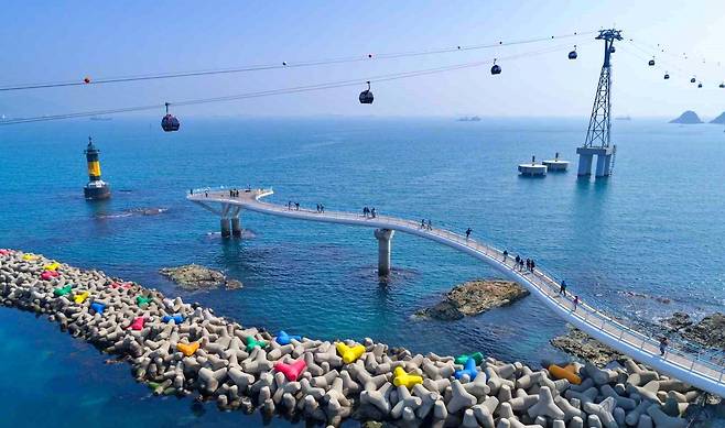 부산 서구 송도해수욕장의 동편에는 바다 한가운데로 뻗어 나간 독특한 산책로가 있다. 송도구름산책로는 해안에서 거북섬까지 연결된 다리로 일부 구간이 투명 강화유리로 만들어져 있어 발아래로 출렁이는 파도와 바닷속을 그대로 내려다볼 수 있다.