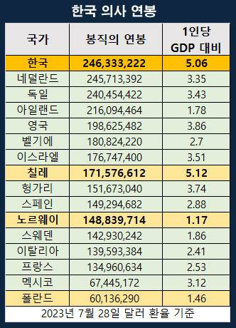 미국·일본·유럽 등 대부분 국가에서도 의사는 상위권 고소득 직업