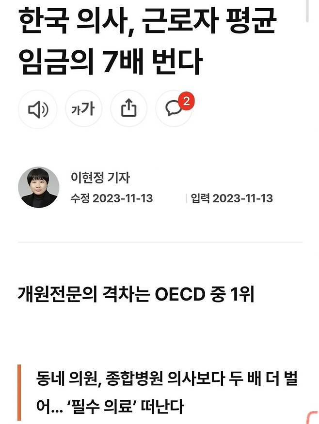 한국에서 의대 정원은 국가가 엄격하게 관리 → 의사 수 자체가 제한적