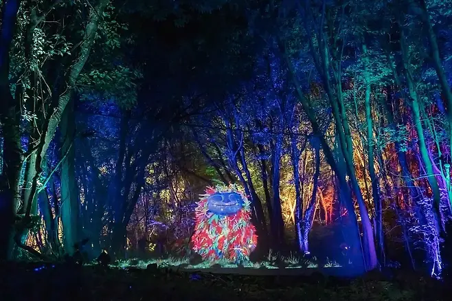 티켓을 받고 광장으로 들어서면, 처음에는 작은 오브제들과 달의 민족 루나리안이 등장해 흥미를 유발합니다. 이것이 바로 루나폴의 프리쇼로, 스토리텔링과 미디어아트가 결합해 관람객을 이색적인 무대로 안내합니다. 낯선 캐릭터의 설명을 듣고 나면, 마치 다른 세계에 초대된 듯한 기분이 들기 시작합니다. 짧지만 강렬한 프리쇼가 끝나면 본격적인 숲길 관람이 시작됩니다.