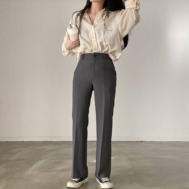 요런 하이웨이스트 슬랙스 + 블라우스