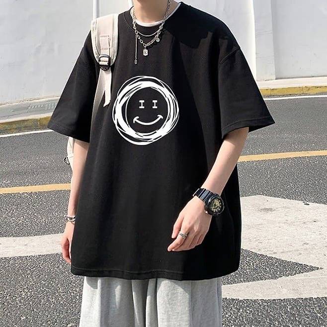 스마일 오버핏 티셔츠 + 체인 액세서리 +