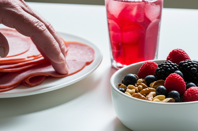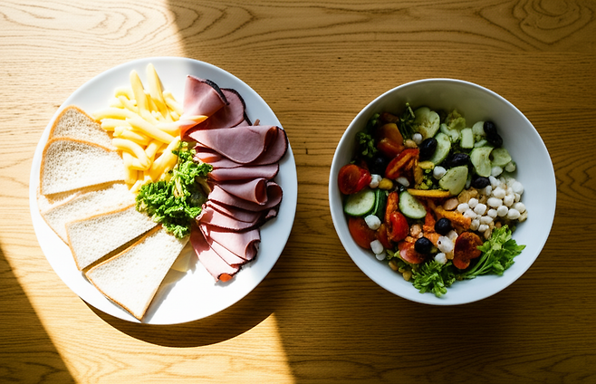 가공육 섭취 줄이기: 햄, 소시지, 베이컨 등 가공육 섭취를 최대한 줄이고, 신선한 육류나 해산물, 콩류 등으로 대체합니다.