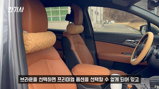 기아의 옵션 장난질이 차급 나누기에서 해당이 됩니다. 가장 심한 것이 2열 커튼이 없고, 헤드업 디스플레이도 풀옵션을 넣어도 할 수가 없는 겁니다. 그리고 프리미엄 같은 경우에는 퀼팅 시트가 들어가는데, 나파가죽 시트가 블랙이랑 네이비 그레이에만 선택할 수 있게 되어 있습니다. 만일 브라운을 선택하면 프리미엄 옵션 선택할 수 없게 되어 있습니다.
